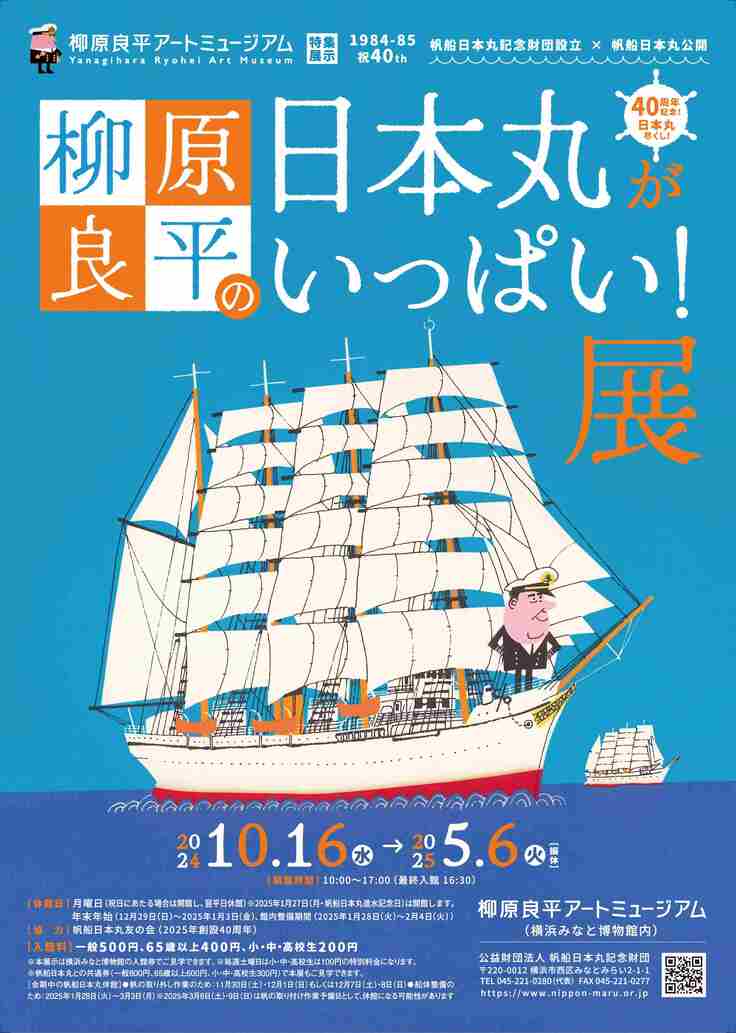 横浜みなと博物館では、財団設立40周年と来年の帆船日本丸公開40周年を記念して、柳原良平アートミュージアムにて特集展示「柳原良平の日本丸がいっぱい!展」を10月16日から開催します。柳原良平が描いた日本丸作品を40周年にちなんで約40点展示します。ぜひご来館ください!