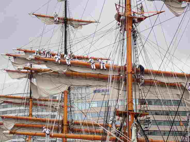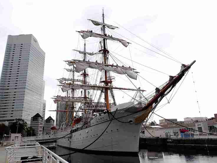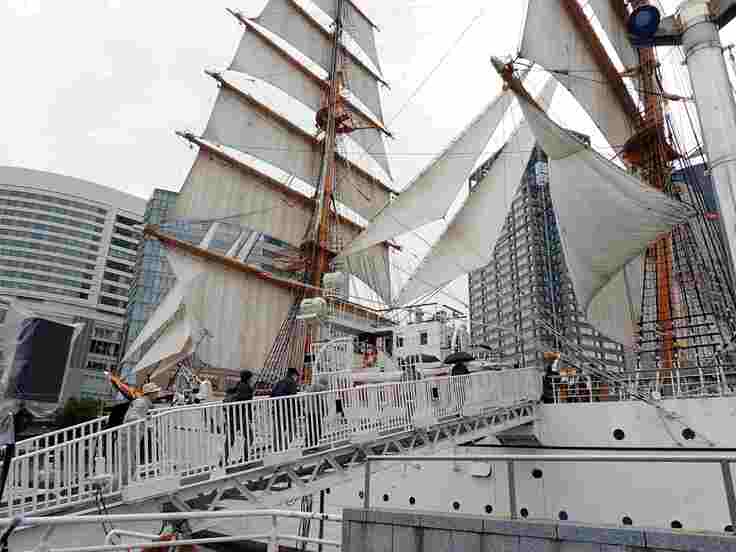 帆を広げた日本丸に多くのお客様が乗船されました。