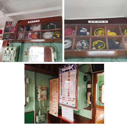 日本丸船内を見学する際、一番初めに訪れる「前部航海船橋」には、国際信号旗が収納されていますので、