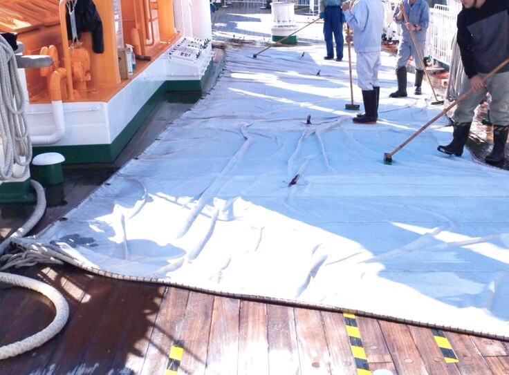 先日、日本丸のセイル(帆)の洗濯を行いました。