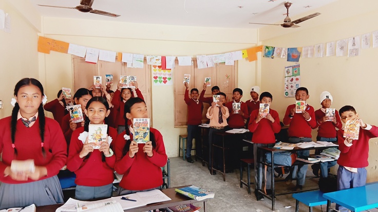 集まった寄付金をもとに、ネパールの各校に日本の「マンガ」を届けることができました。