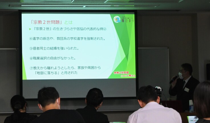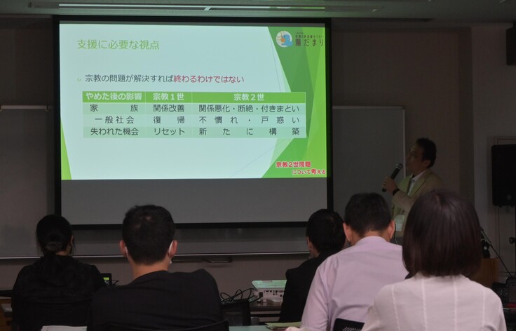第2部では、当会理事長で25年以上にわたり宗教2世支援の実践に携わってきた秋本弘毅より、昨今のデータとさらにこれまでの支援の経験により、本当に必要な支援は何か、支援に携わる時の視点や注意点などを具体的にまた理由も含めて解説していました。