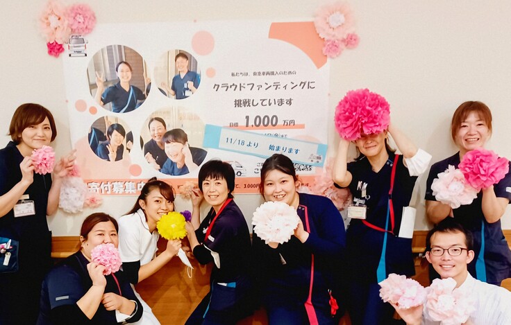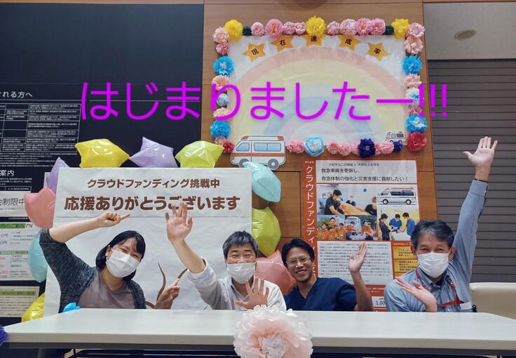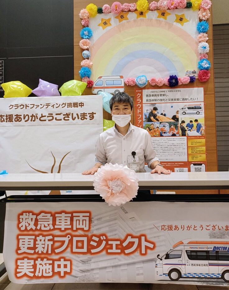 病院内のエントランス横にクラウドファンディングブースを設置してます。