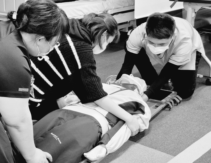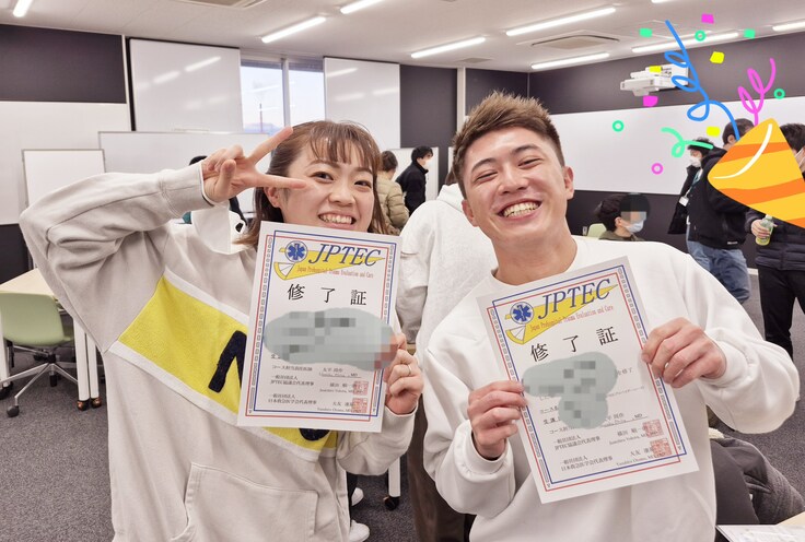 以前に投稿した研修医1年目と救急2年目のスタッフを少しご紹介致します。先日、JPTECという病院前救護活動の研修に受講しました。受講前には手技の練習を院内で行います。2人は協力してお互いに声を掛け合いながら練習してました。