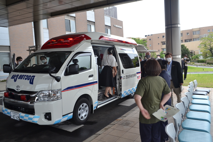 皆様からのお力添えで購入となりました本車両で、一分一秒を争う救急現場にドクターカーとして、また、災害発生時にはDMATカーとして医療チームがいち早く向かい、助けを求める方の元へ迅速に対応できるようになりました。