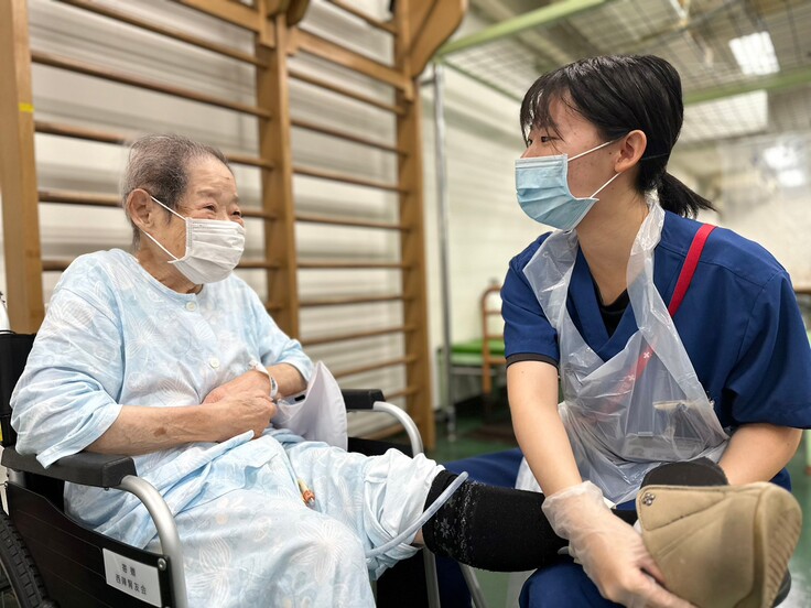 そのような状況のなかでは、階段昇降台などの設備を設置するスペースもなく、院内の階段を使い階段練習を行っています。また、実用的な歩行練習の際は屋外で行いますが、路地は狭く車や自転車などの通行もあり、患者さまから不安の声が聞かれることもありました。