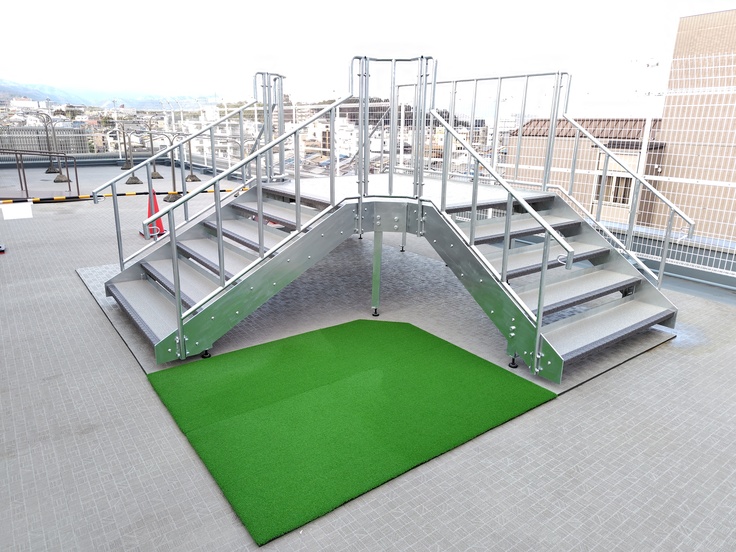 階段や人工芝エリア、坂道のスロープが完成しました。