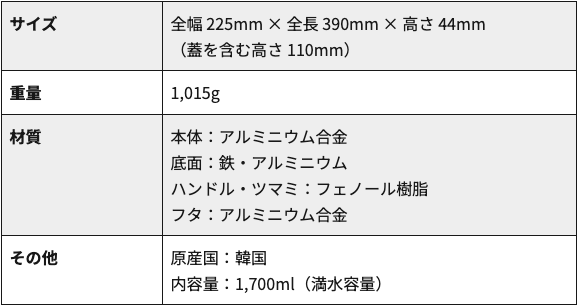 ガス火だけでなくIHにも対応ワイドな角型、深型なのでボリュームのある食材もそのまま調理可能です。深さもあるため、炒めた後にそのまま煮込むこともできます。アルミ製のフタ付きで食材を熱で包み込むような調理方法も可能。