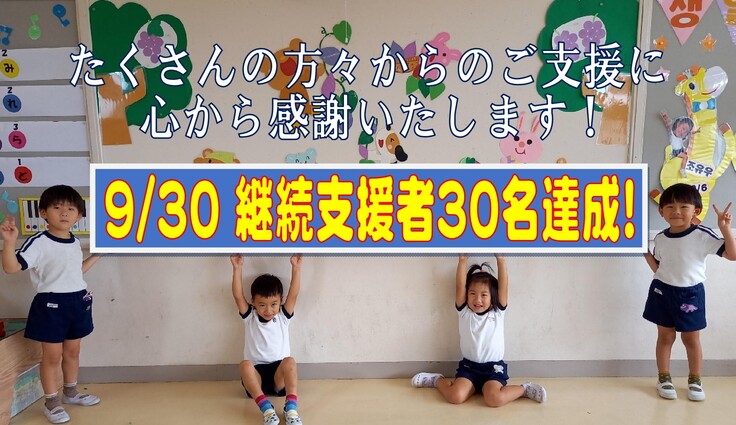 8/19から始まった「継続支援者プロジェクト」の支援者数が、9/30に30名に到達しました!