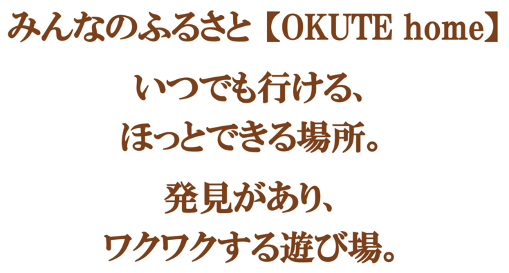 ここ大湫町に、みなさんがいま住んでいる場所とは別に、もうひとつ自分の居場所のような、おばあちゃん家のような、ほっとできる場所を作りたい。自分の楽しみを見つけたり、ゆっくりしたり、好きなことに挑戦してみたりと、みなさんにとって、ふるさとのような、新たな遊び場になったらいいなと思い、OKUTE homeと名付けました。