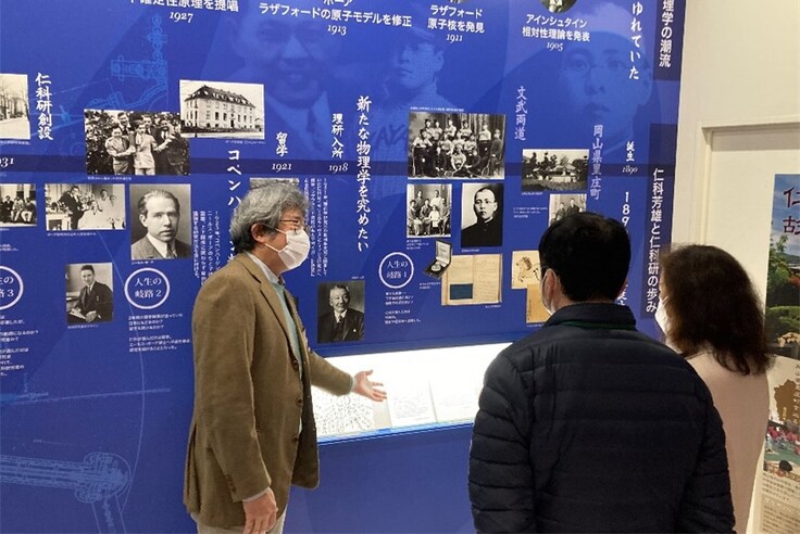 新設した仁科芳雄記念室をご覧いただき、仁科博士の生涯や研究をご紹介しました。参加者からは、仁科博士が行っていた研究の幅広さに驚く声が聞かれました。
