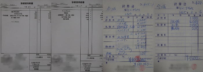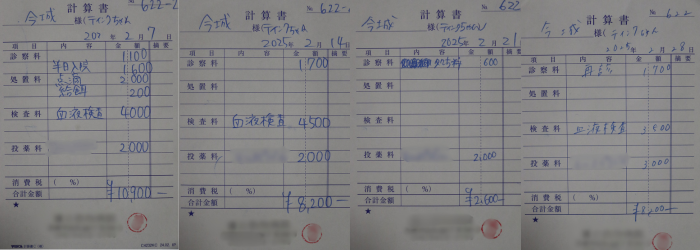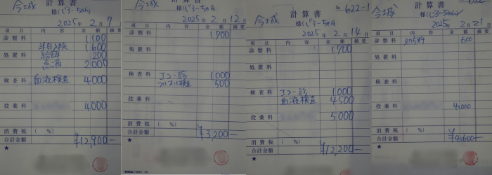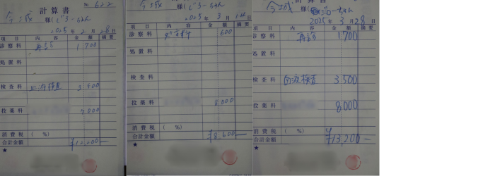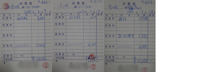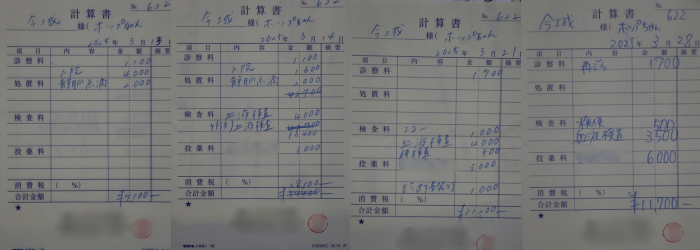 診察・検査代 20,600円(4月2回、5月2回、6月1回)