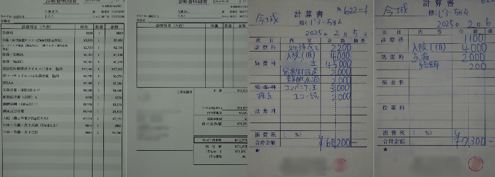 最後に、3匹の診断書と今までかかった診療の明細書です。