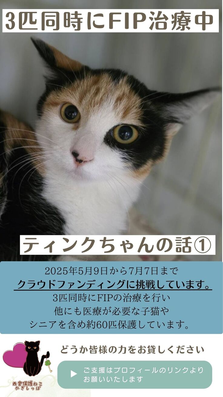 今日はFIP治療中の猫、ティンクちゃんがFIPと判明するまでをインスタグラムへ公開しましたので、そちらのご報告となります。