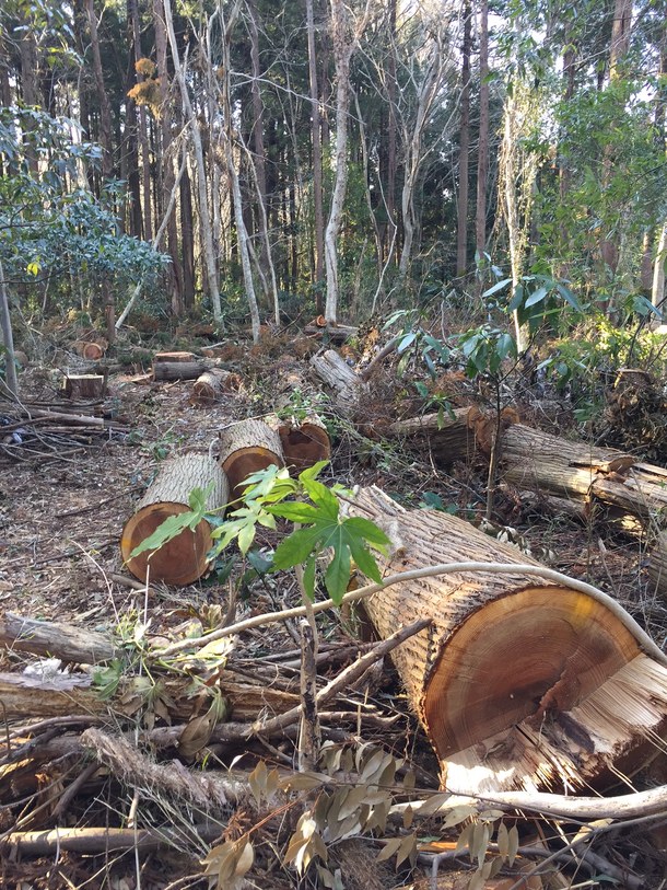 まだまだ荒れ放題の森ですが、樹々の芽も伸び始め、柔らかい黄緑色の葉っぱが顔をだしています。