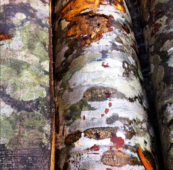 朽ちた丸太、樹液に群がる虫、カビやきのこが
