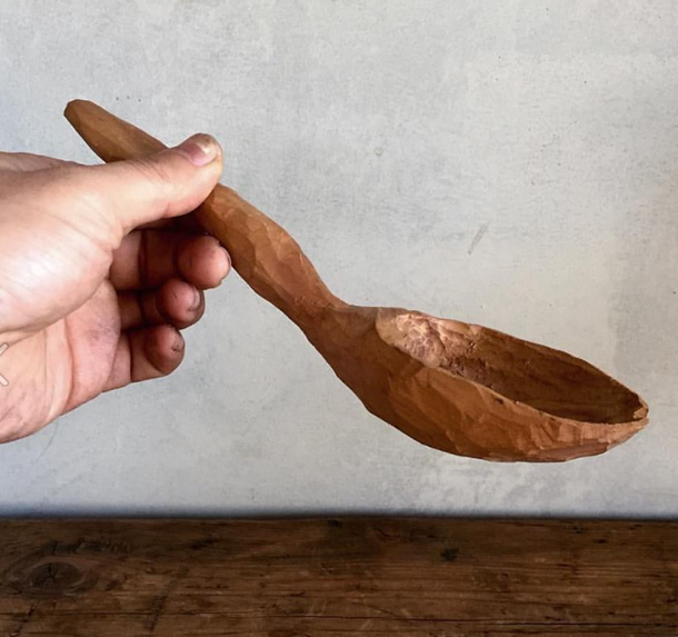 (写真のスプーンは小学生の時に母へのプレゼントとして庭のクルミの木から作ったものです)