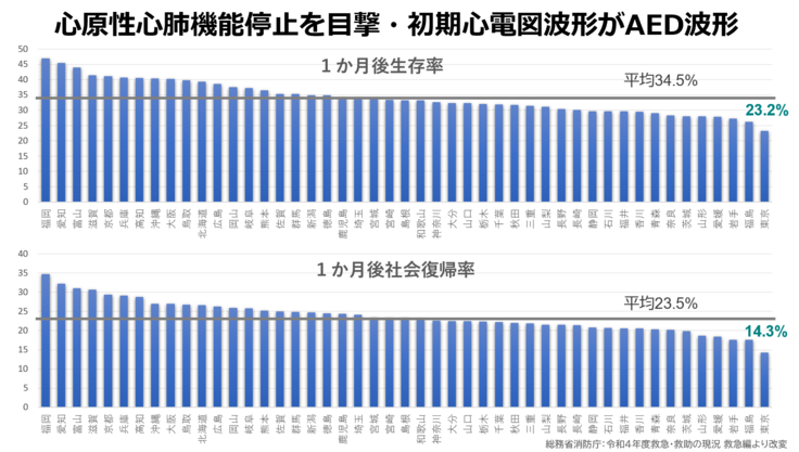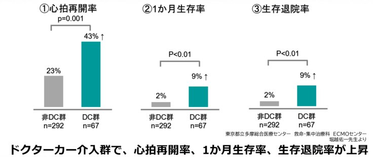 事実、東京都において心臓が止まった患者さんの生存率、社会復帰率は全国ワースト1です(※参照)。もし、ドクターカー活動による救命率の向上がなくなれば、さらに多くの患者さんの命は失われてしまいます。