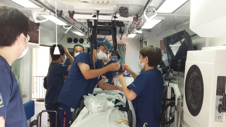 病院前救護活動において、救急隊や救急救命士が行うことができる処置が制限されている中で、私たちは現場で命の危険に瀕した患者さんに対して、迅速かつ適切な医療処置を行い、近隣の救命センターや救急病院へ搬送することで多くの患者の救命に貢献しています。