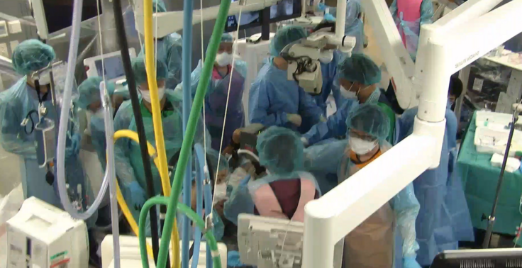 また医師は病院に直接診断を連絡し、緊急的に人工心肺を扱う医療チームを発動しました(E-CPRといいます)。現場からの医療処置を継続しつつ患者さんを当院までお運びし、救急医療チーム一丸となって治療を継続しました。