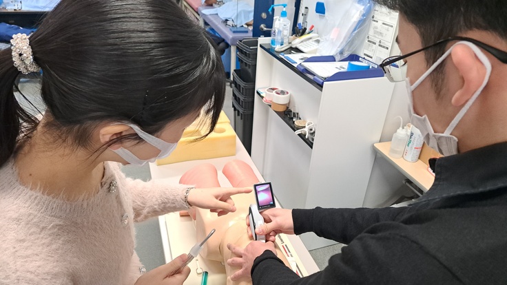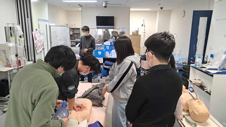 気管挿管、胸骨圧迫、除細動器の使用などなど、倒れた患者さんをお運びするところから、順を追って指導しました。未来の救命医がドクターカーに乗って、一人でも多くの命を救ってくれることを願っています!