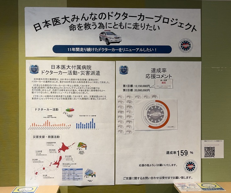 本クラウドファンディングもいよいよ終盤となってきました。よりたくさんの方にこのプロジェクトを知っていただきたい、私たちのドクターカーでの活動を知っていただきたいと思い、現在、院内の掲示も強化をしております!!