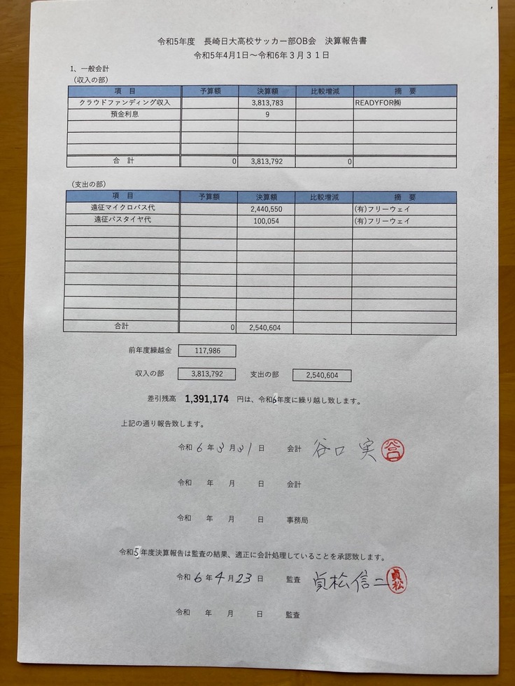 ① OB会決算報告を共有をさせて頂きます。