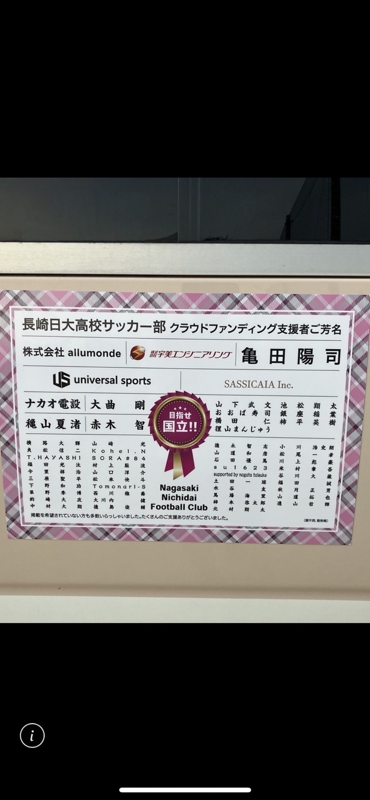 【がんばれ長崎日大!純粋応援】1万円コース
