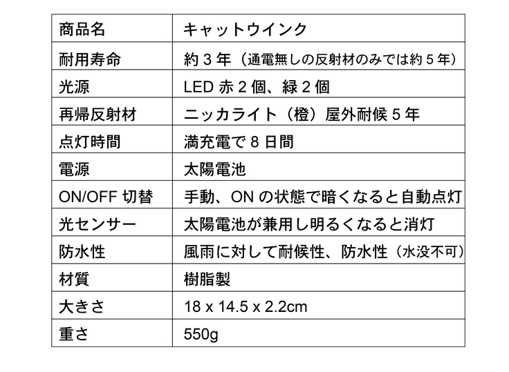 この製品が普及すれば、運転者の注意をより路上に対して促すので速度を抑制させる効果が見込め猫のみならず他の動物や人間の歩行者の事故も減らす事が期待できます。将来的に小動物をセンサーで自動検知する自動運転車が完全に普及すればほとんどのロードキルが減らせると思いますが、そこまでには10年単位の長い時間が必要です。そこまでの繋ぎ役として当製品が役立てたら大変嬉しく思います。少しでも悲惨な事故を減らしたい。不幸な猫を減らしたい。どんな猫や動物も人間の都合に左右されずに平和に健やかに一生を過ごせる権利があると信じています。ぜひキャットウインクの普及の応援をよろしくお願いいたします。ご覧いただき誠にありがとうございました。