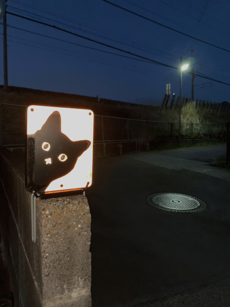 市街地で運転者に対して注意を促す方法はないだろうか?一つのアイデアとして、私有地を利用する方法を考えつきました。日本の生活道路は私有地と近い位置にあり、車は住宅の至近距離を時には高速で走行しています。動物だけでなく歩行者の交通事故が諸外国に比べて多い原因もここにあると思います。道路法で歩道や道路などに物を設置する事は禁じられていますが私有地なら法的な問題はありません。道路にはみ出さずに、かつ運転者へ効果的に注意を促すキャットウインクの普及を目指し少しでもロードキルの被害から猫を守りたいと思います。