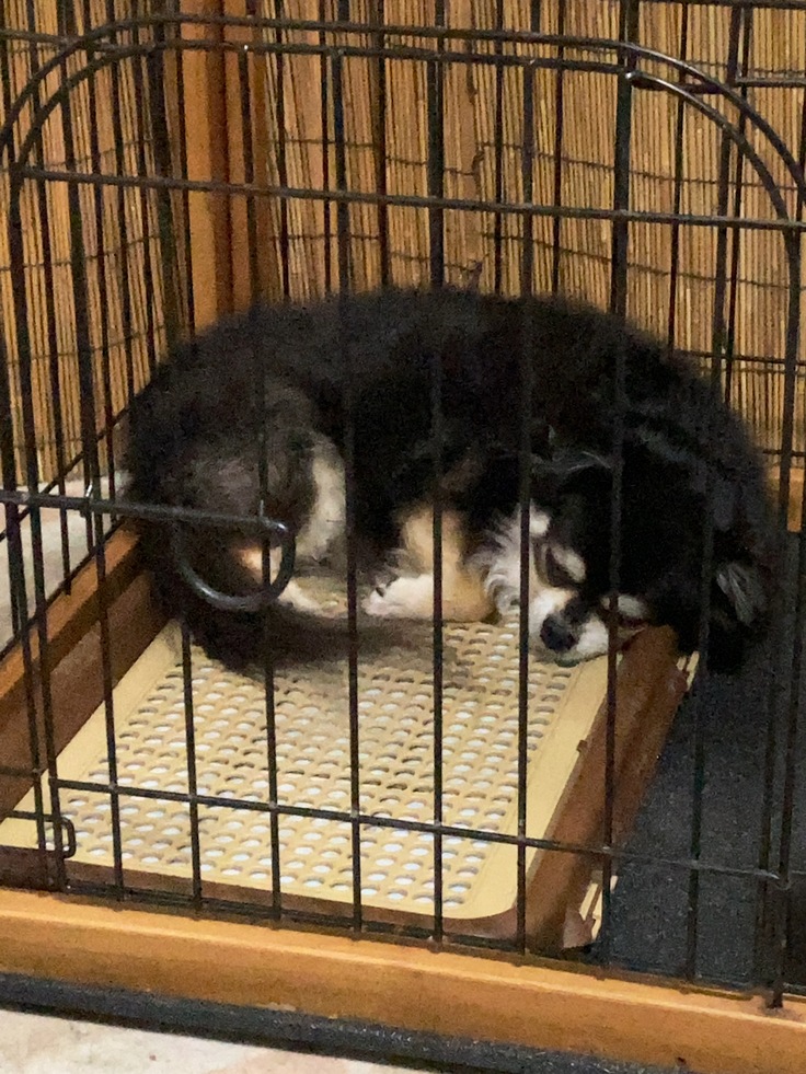 このご時世もあり遠出できていませんし、前庭疾患による影響と思しき顔面麻痺も出始め瞼は完全に閉じなくなってしまい毎日両目からたくさん涙を出して目の周りはカピカピです(見にくいですが半目で寝ている様子です)