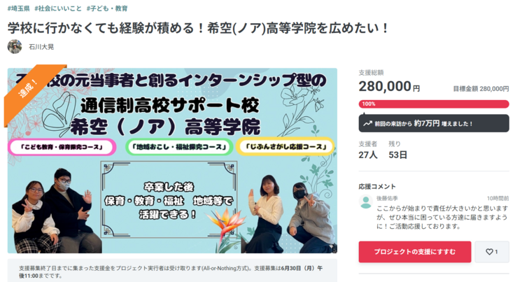 ご寄付や拡散等、様々な形で応援いただきまして、この短期間で達成できました。