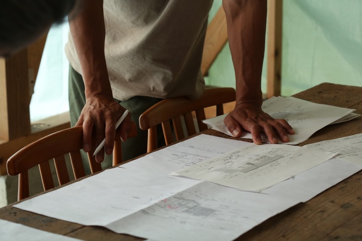 話を聞いてみると、私たちが学んだパーマカルチャーセンタージャパンのデザインコースの大先輩でした。その後も、松本で建築中の宿で偶然お会いしたり、通う美容室を手掛けられていたりと接点が多いことでご縁を感じ、お声がけをさせていただきました。非常に、心強いチームで再開できることに感謝いたします。