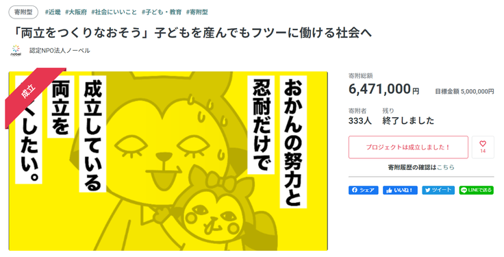 【御礼】333名の方から総額6,471,000円のご支援を頂きました!