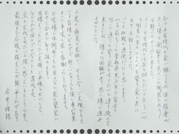 残り3日、父から支援者様への感謝の手紙(2018.9.27追加)
