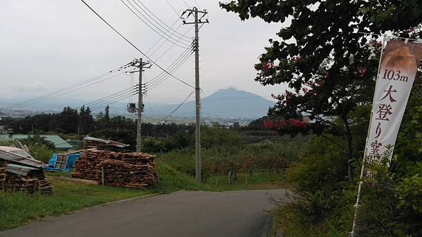 周囲のリンゴ畑のリンゴもいつの間にか赤くなってました。ちょうど百日紅の下のあたり・・・