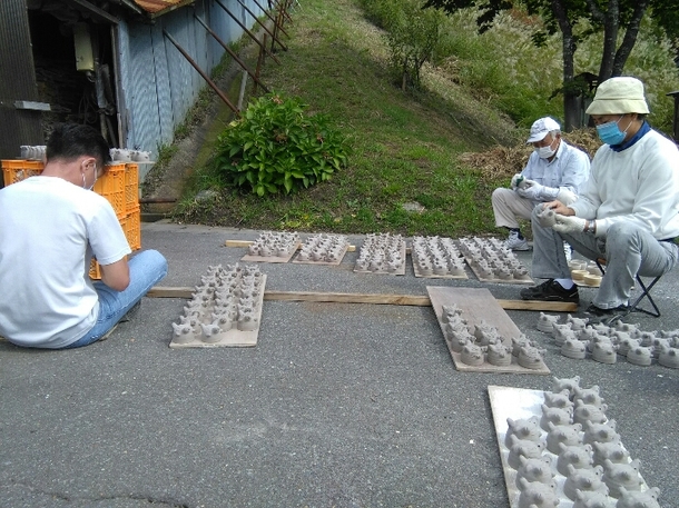 写真は来年の干支の「いのししぐい吞み」のバリ取り作業です。