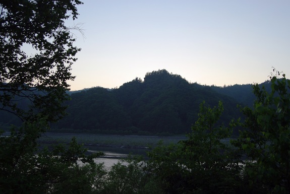 対岸から見ると、夏至の太陽が沈むとき、ちょうどこの穴に太陽がピッタリとはまったように見ることができます。