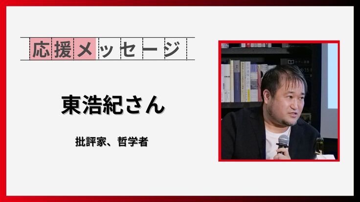 応援コメントのご紹介【東浩紀さん(批評家、哲学者)】