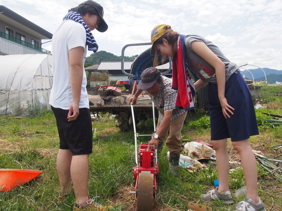 ホウレンソウの畑の雑草をぬいたり、ナスやトウガラシが格好良く育つための支えを作ったり、機械についておしえていただいたり・・・