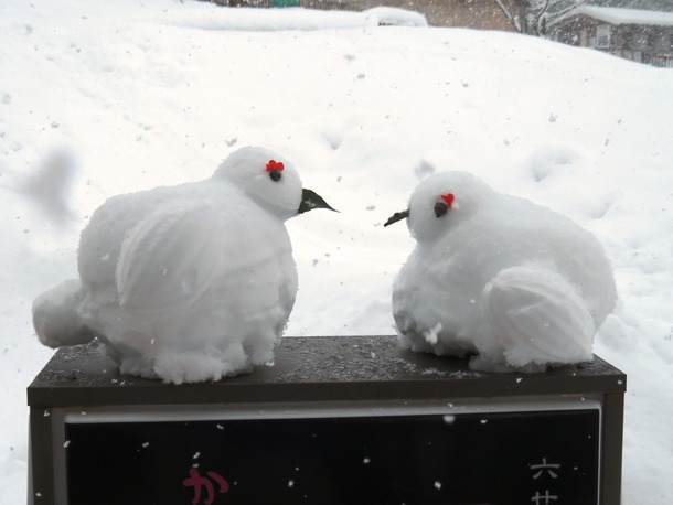 実は、当園のTM職員が雪で作ってくれたライチョウでした。