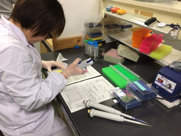 実際は写真のように、ライチョウの糞便の中に含まれる性ホルモンを分析しています。数えてみると,これまでに飼育のライチョウ57羽,糞の数だと7700個も分析していました(スバールバルライチョウ含む)。
