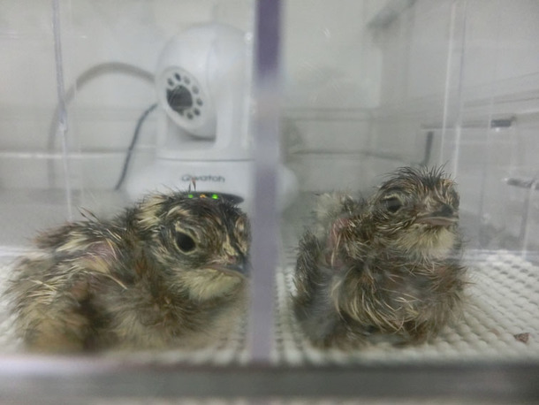 3羽のヒナのうち2羽は昨年までと同様に嘴打ち(卵に内側からの小さな穴が開くこと)が始まってから11~15時間後には孵化し、ヒナの状態も良好そうでした。