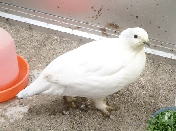 今年生まれのライチョウのヒナたちはもうすぐ孵化後6ヵ月を迎えます。9月の終わりごろから白い羽が生え始めていましたが、全身、真っ白な姿に変身しています。