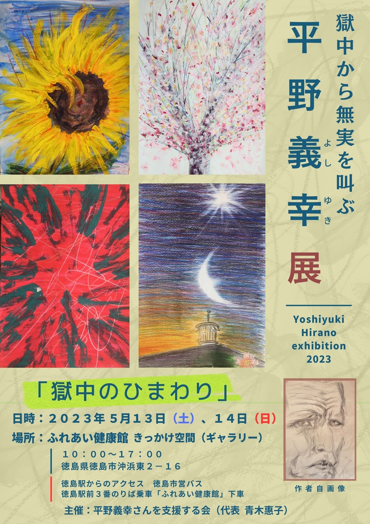 徳島刑務所で無実を叫ぶ平野義幸さんの絵画展が開かれます。