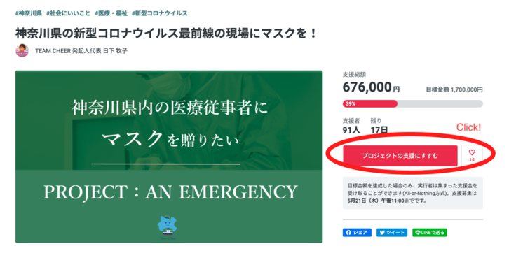 【応援コース】神奈川県の医療従事者にマスクを届けよう!