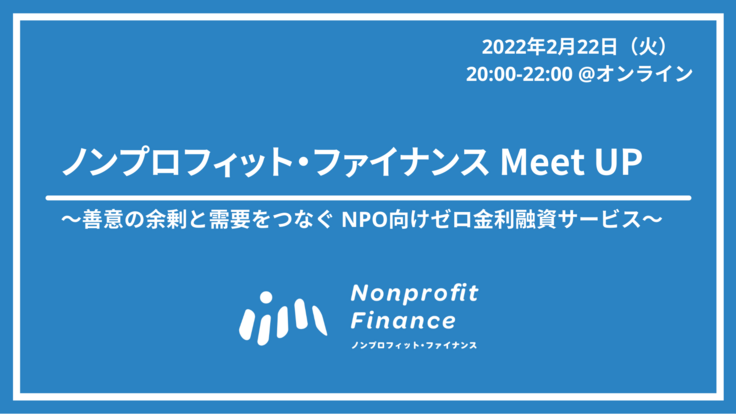 先日の事業説明会でもお知らせいたしました、ノンプロフィット・ファイナンスのミートアップイベントを2/22に開催します!