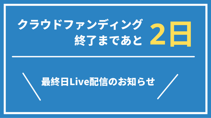 皆様に応援いただいております、クラウドファンディングについて、残すところあと2日となりました!