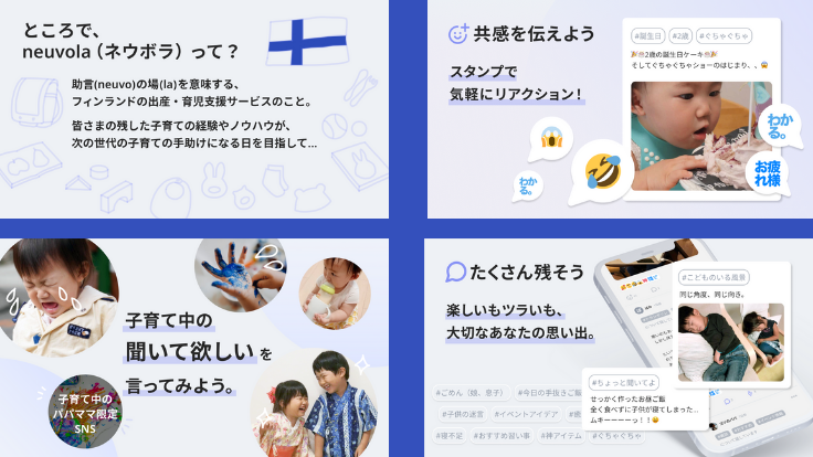 子育て情報プラットフォーム「neuvola」は、子育て中・子育て経験者が交流できるSNSです。