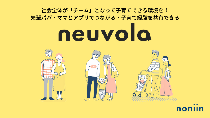 私たちは、その第一歩として「neuvola」を通じ、子育てするパパ・ママの情報交流を促進しつつ、その先にも目をむけ、育休復帰後のキャリア相談や「上手な周囲への頼り方」など、パパ・ママがもっと素敵に生きるための支援をサービスとしてお届けしたいと考えています。